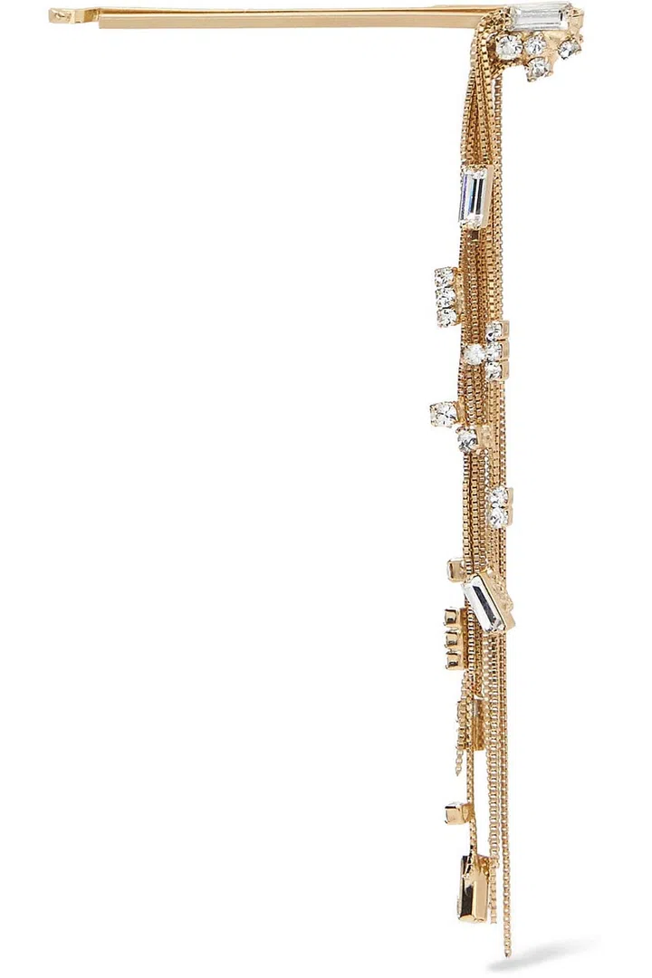 This isn't your run-of-the-mill standard gold hair clip that just clips your hair into place and calls it a day. It features slim dangling chains studded with tiny crystals that move with you as you move your head, giving your whole look an ethereal beauty. Complete the look by slipping into a long laced maxi dress. You'll be looking and feeling like an angel.