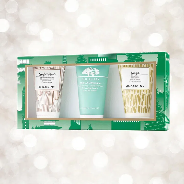 This lets you sample its range of hand rejuvenators. The Comfort Mood Silky Vanilla Hand Cream (30ml) is an ultra-rich hand cream with a vanilla scent, Make A Difference Rejuvenating Hand Treatment (30ml) provides intense hydration and helps to even out your skin tone, and Ginger Hand Lotion (30ml) boosts the senses, and soothes, repairs and nourishes skin with safflower and sunflower seed oils and vitamin E. From Origins counters.