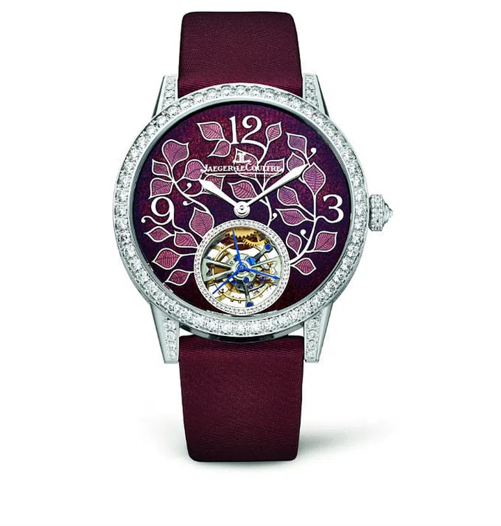 For the Swiss brand, the choice of ivy as a decorative motif dates as far back as 1890, when the pattern appeared on a pocket watch with a crimson enamelled case. Fast-forward to this year, and the plum shade of the translucent enamel on this Rendez-Vous Ivy Tourbillon accentuates the “branches” that culminate at the 3, 9 and 12 o’clock numerals.