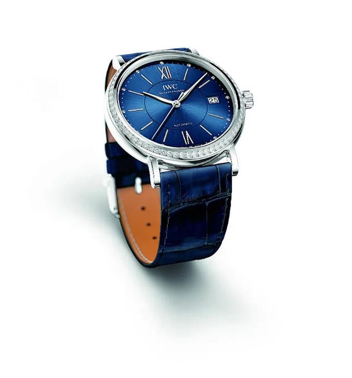 The Swiss watchmaker’s flagship model might be its 75-year-old Portugieser, but at Watches & Wonders, pride of place went to the Portofino collection. Two new versions of the diamond-set Portofino Automatic 37 ($15,400) have been introduced: a blue-dial-and-strap combo inspired by the Ligurian Sea, and a stunner with a silverplated dial and raspberry-coloured strap. Both have bezels set with 66 diamonds and feature croco straps created in collaboration with shoemaker Santoni.