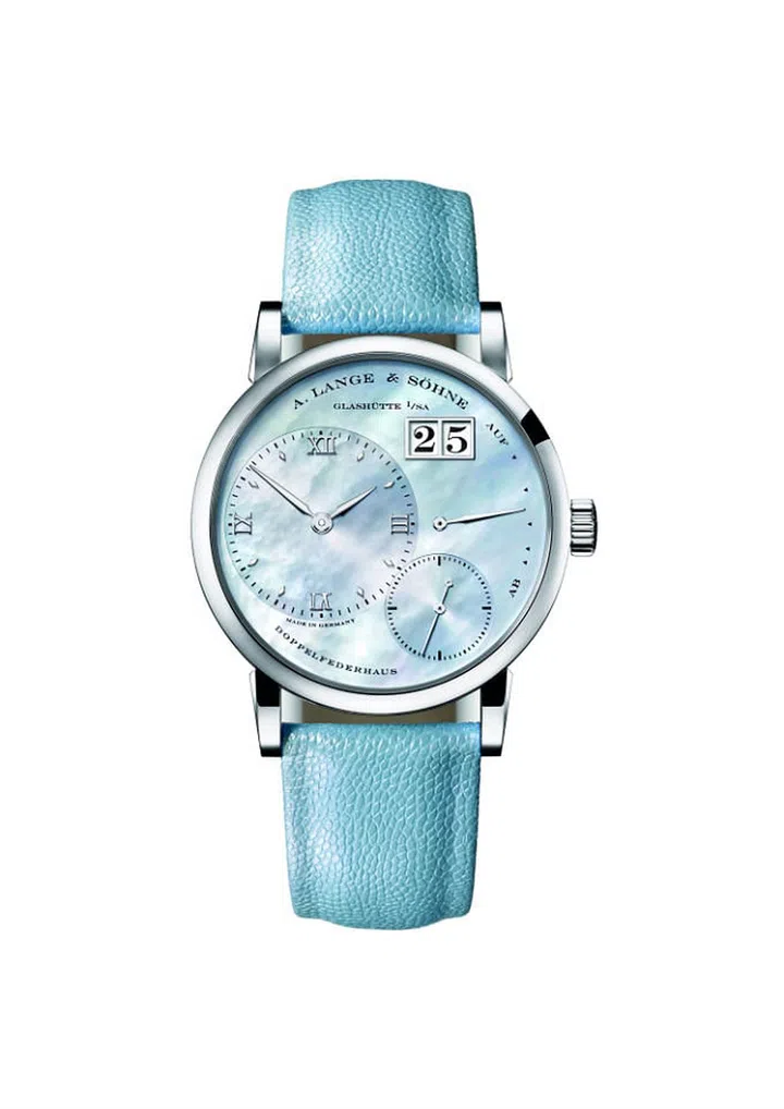 Little Lange 1 in white gold with leather strap, $49,800, and in pink gold with leather strap, $48,000.