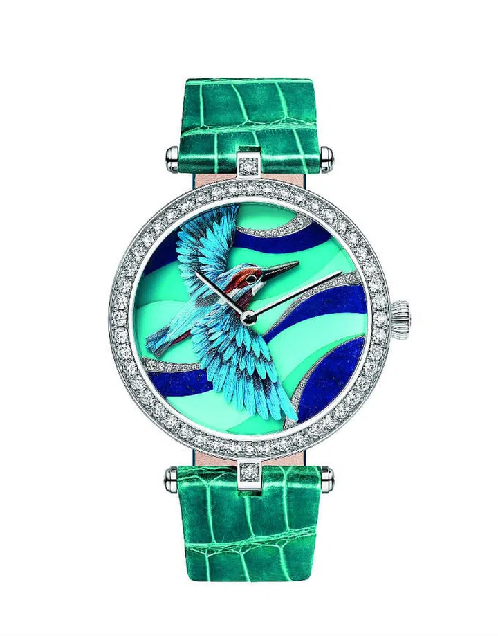 A first for the French brand: combining gold engraving and stone marquetry (using stone to form decorative patterns) with the technique of feather art. Each of the three limited-edition Lady Arpels Oiseaux Enchantes watches features a bird motif created by feather artist Nelly Saunier – and her skills call for a degree of precision that runs to the tenth of a millimetre. Only 22 of each limited-edition design are available in the world.
