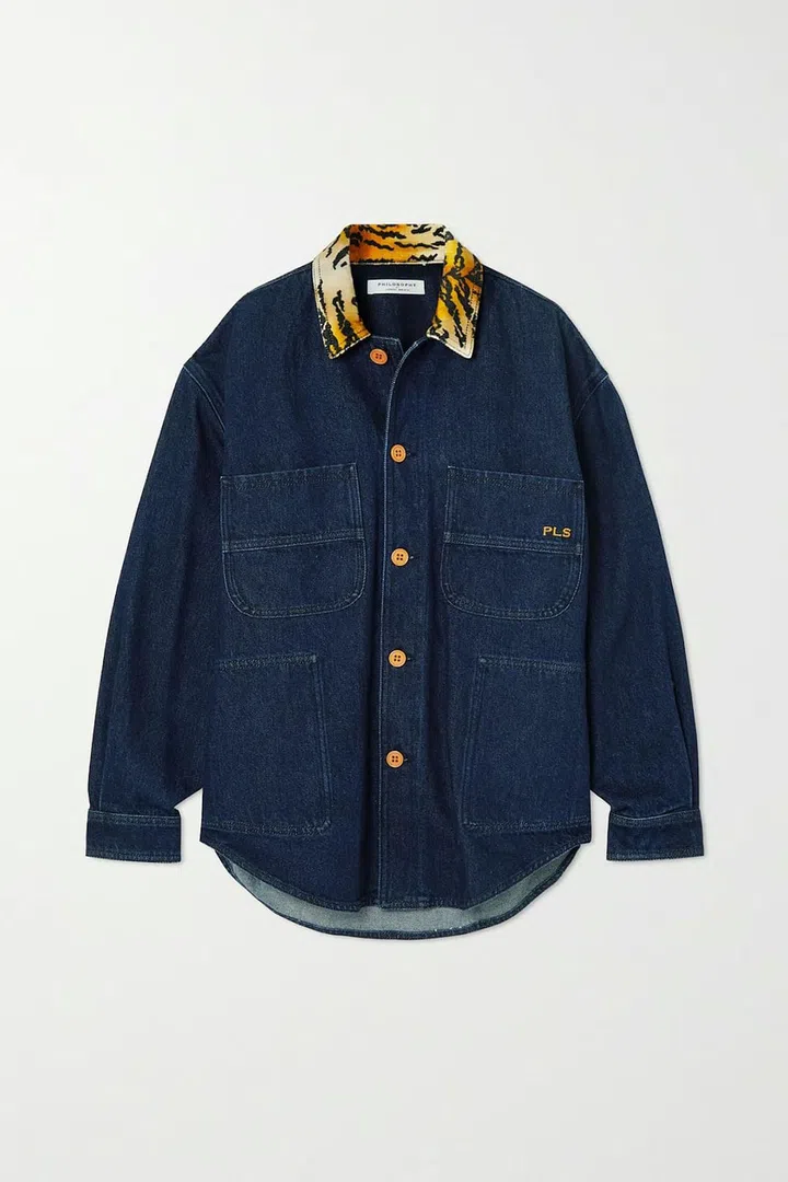 Splurge: Tiger-print Velvet-Trimmed Denim Jacket in Navy, Philosophy di Lorenzo Serafini, US$635.07 (SGD $865)