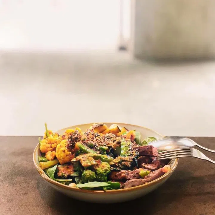 Go for two half-portions of the ready salads or get a larger plate with three salads. You can also create your very own grain bowl or salad bowl.