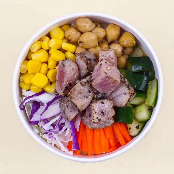 Ninja Bowl specialises in Japanese inspired rice bowls. You can choose to go for brown rice or the Japanese pearl rice as your base. For S$3 you can even switch it for quinoa.
