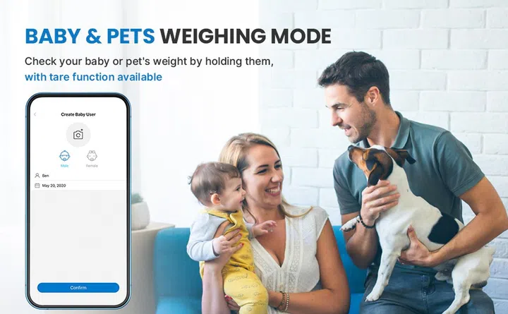 Ditch the old method of weighing yourself, then carrying your tot or fur-baby and subtracting the difference, ‘cos Renpho's got a mode for that.
