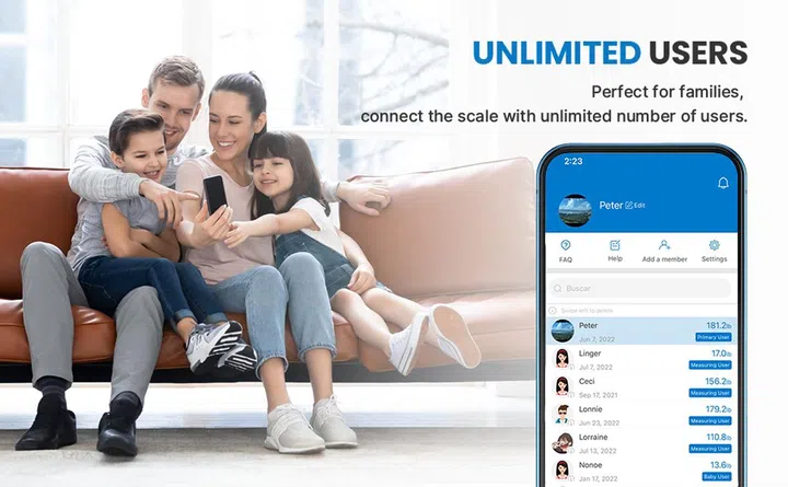 It's not just your stats on display. This scale embraces everyone — from grandparents to toddlers. With its ability to add an unlimited amount of users, every family member can track and celebrate their health milestones.