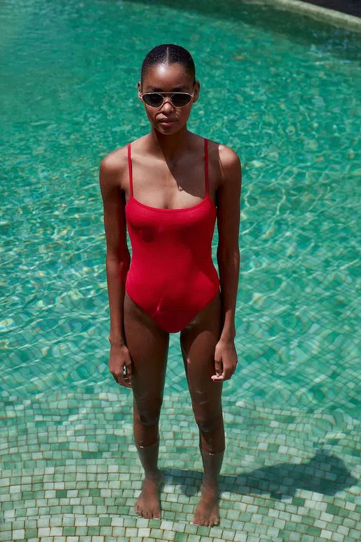 Nothing says "look at me" more than fiery chilli red. For those who grew up watching Baywatch, channel your inner Pamela Anderson or Caroline Bleeth with this striking one-piece. Style this with a pair of bell-bottom jeans and a messy bun.