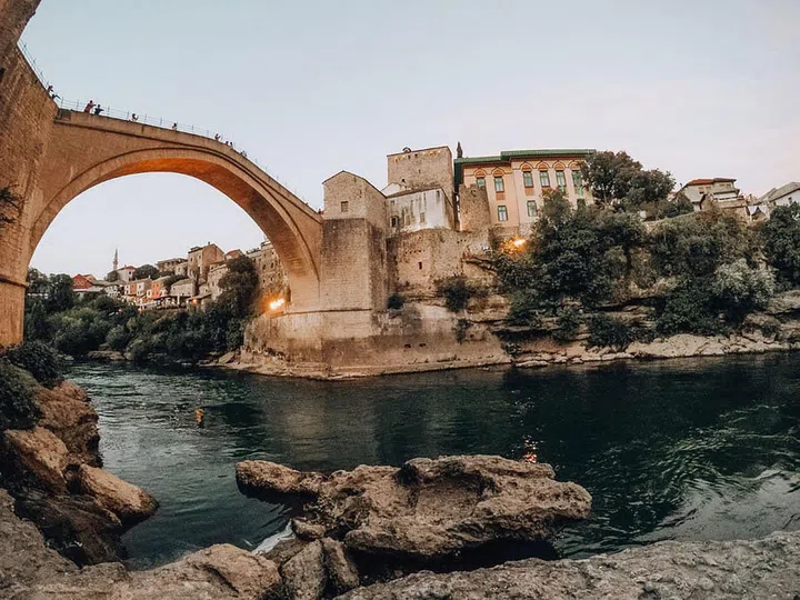 When you’re done, venture to Mostar, Bosnia’s best-known city. Old bridges criss-cross turquoise waters, while its famous Blagaj Tekija Monaster, which was built by monks in the 16th century, sits at the base of a cliff in a small village.