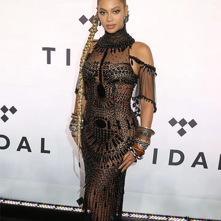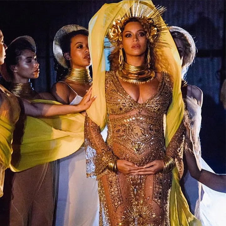 She wore this gold embellished sheer gown by Norwegian designer Peter Dundas on a day when she walked off with the Best Urban Contemporary Album award for Lemonade.