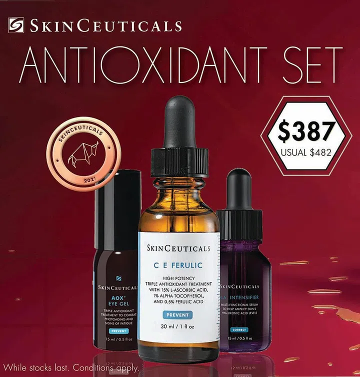 Strengthen your skin for the CNY celebrations with this Antioxidant Set by Skinceuticals. The C E Ferulic is an antioxidant treatment that contains vitamin C, vitamin E and ferulic acid to reduce signs of lines, spots and wrinkles. Use it with the AOX Eye Gel and H.A. Intensifier (a multi-functional serum) to fight skin ageing, reduce eye puffiness, as well as brighten and smoothen your complexion. Suitable for normal, dry and sensitive skin types.