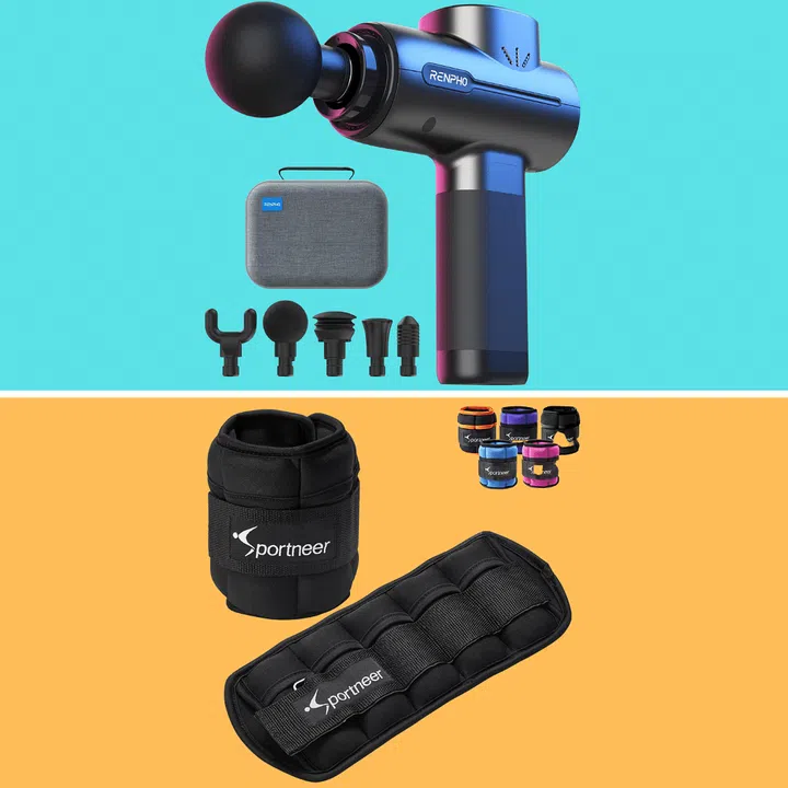 Banish muscle tension and aches with this massage gun with multiple massager heads to target different areas.