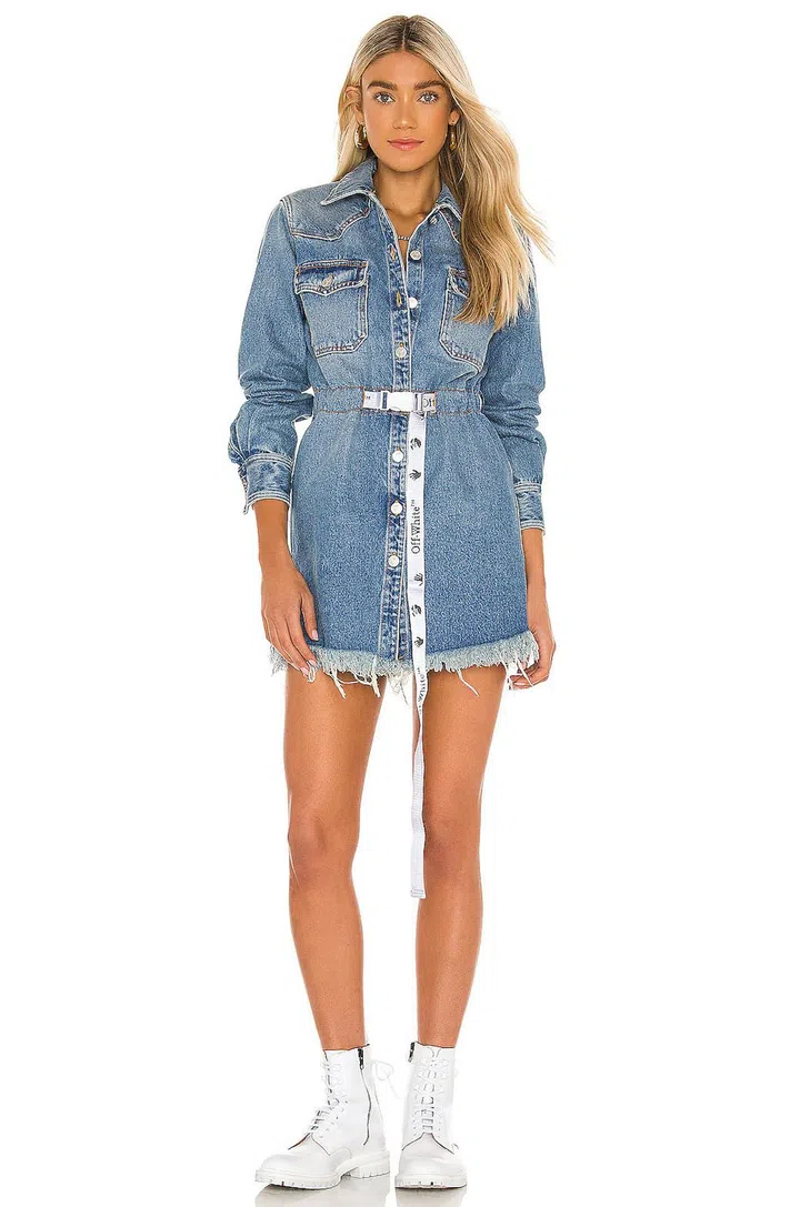 Denim jackets and dresses are most commonly made in boxy cuts that aren't the most flattering to the figure. That is why the addition of a belt makes this Off-White dress a genius design as it can cinch the waist to create an hourglass shape. Try pairing the look with chunky boots, sneakers or strappy heels.