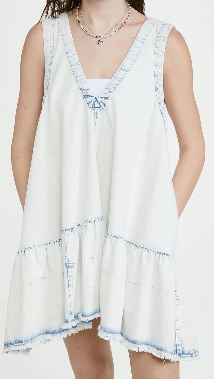 Denim need not be in the usual indigo wash. As evidenced by this Victoria. Victoria Beckham boxy T-shirt dress, a denim dress can look clean and ethereal when made in white. Play off the laidback qualities of the frayed edges with a pair of espadrille flats or go chunky with dad sneakers.