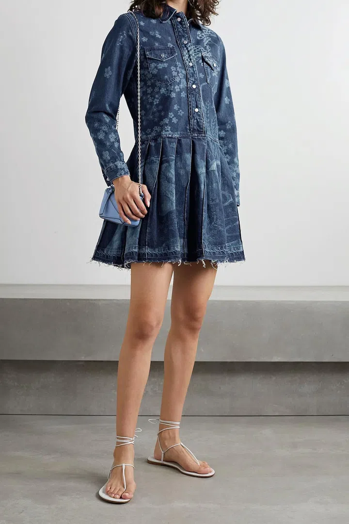 RedValentino Frayed Pleated Printed Denim Mini Dress, $1,202 from Net-a-Porter
