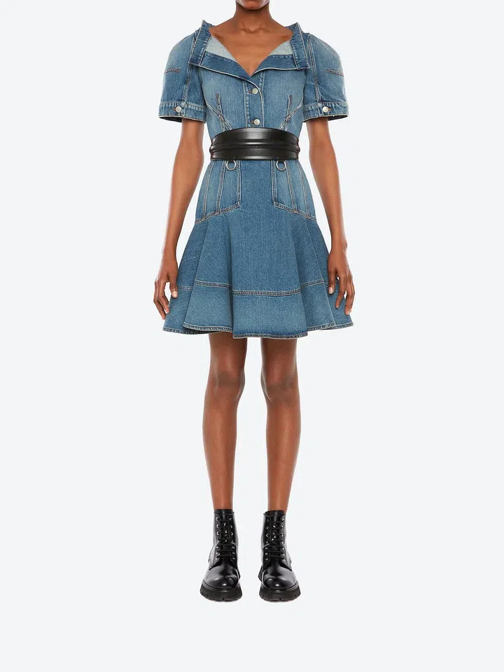 Like many of you, we are obsessed with the fashion and style of the members of the South Korean girl group Blackpink. Recently, Lisa posted a photo on her Weibo account wearing an Alexander McQueen asymmetric denim midi dress on the Chinese girl group elimination reality show Youth With You, where she serves as the dance mentor. We fell for the look instantly but unfortunately, the dress is sold out on the McQueen site. Inspired, we went in search of 10 other denim dresses that you can wear in Singapore comfortably, without being bogged down by weight and heat.