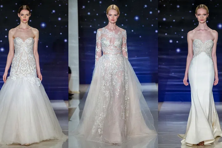 Reem Acra goes with a lavish, decadent look with plenty of shine and striking black.