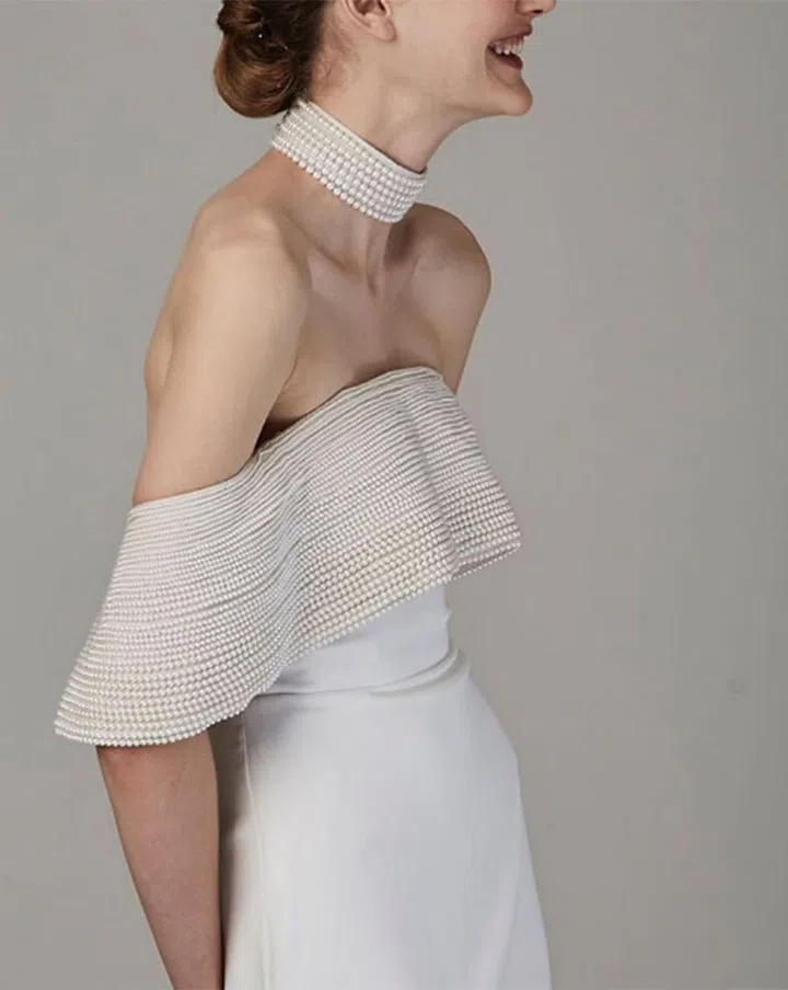 Have your pearl-encrusted gown look doubly gorgeous with a matching necklace.