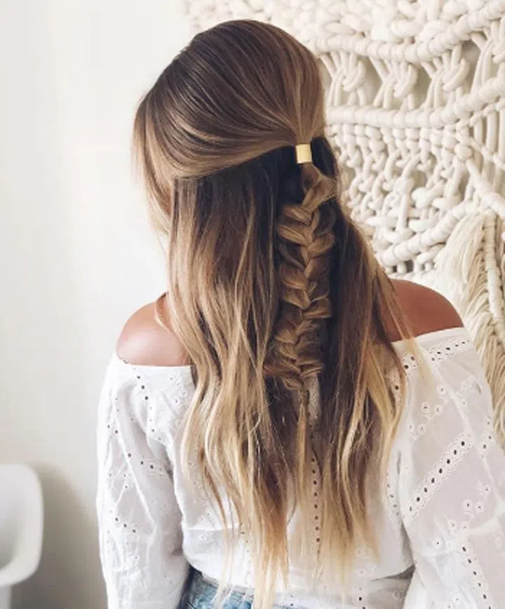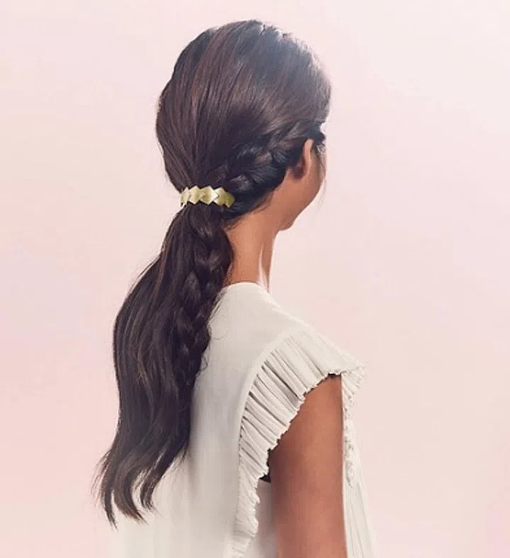 A classy half-updo (we love these 15 modern styles) gets extra swoon-worthy with a plait. Give it contemporary style with a bit of hardware - this one's a scarf ring doubling as a hair accessory!