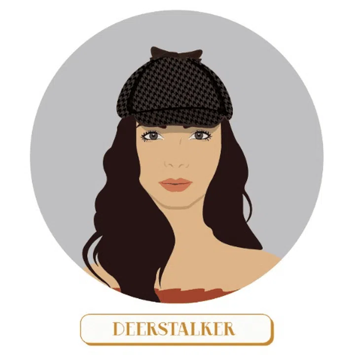 Basically, the hat that Sherlock Holmes is often depicted in. Usually made of wool in a plaid or houndstooth pattern, the hat features several panels with rounded sides, and a visor in the front and back.