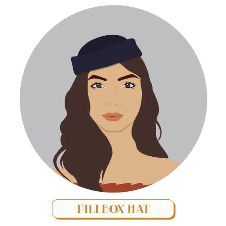 A small hat featuring a flat crown and straight upright sides with no brim. Usually worn by women, the pillbox hat is a super elegant style of hat that was made super popular by style icon Jacqueline Kennedy, who was known for always being seen in them. It gets its name from the small, cylindrical cases that pills used to be sold in.