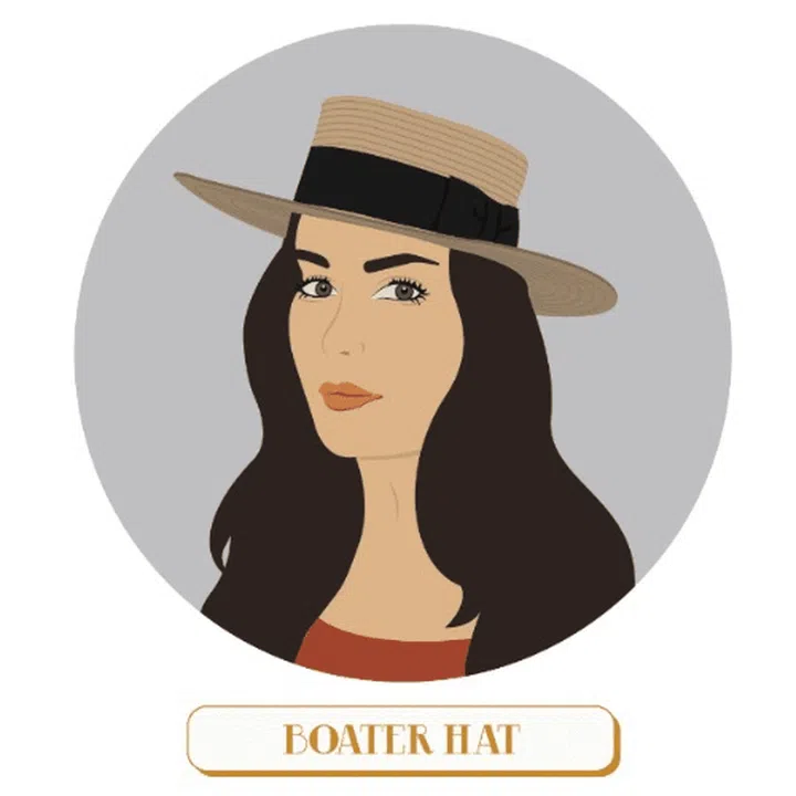Also called a ‘skimmer’, the boater is traditionally made of straw, featuring a small to medium sized brim, a short crown and a flat top. From ribbons to even feathers, modern day boaters with all sorts of embellishments are easy to find.
