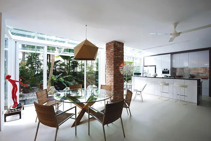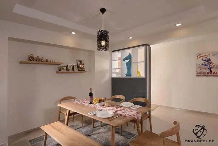 The homeowners of this HDB flat dedicated a large space in the home for their dining area.