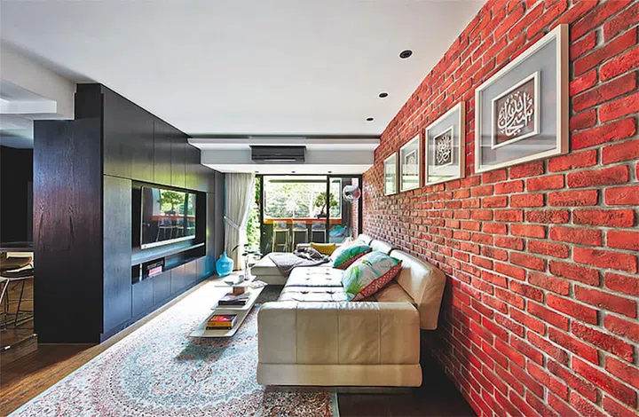 This country-style three-bedroom condominium apartment is home to a family of four.