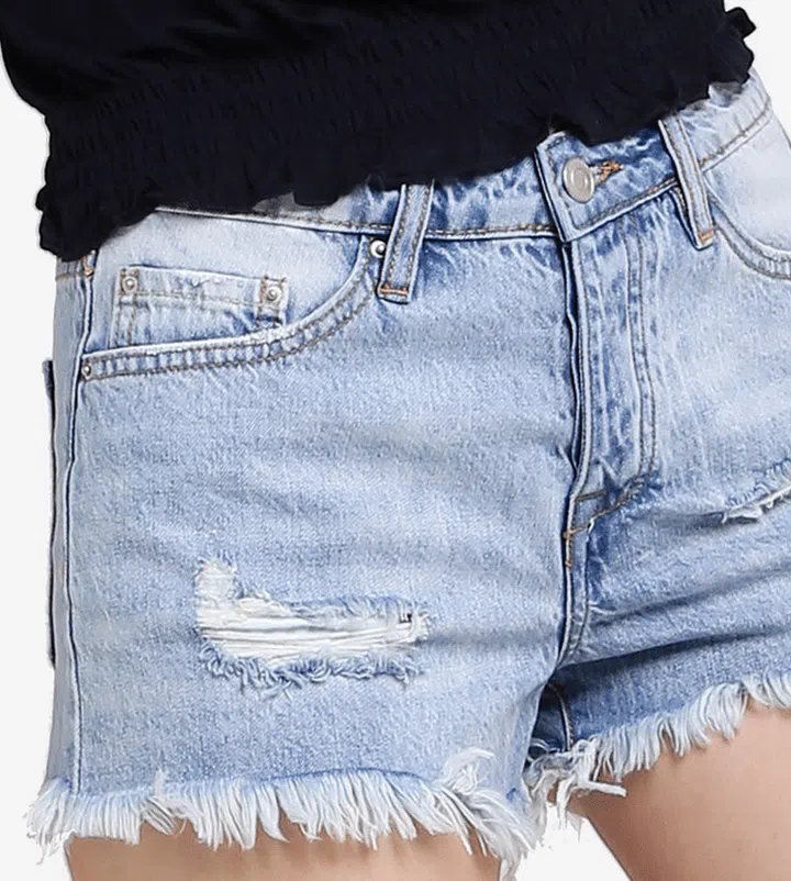 Stressed-look or ripped denim shorts are the number-one piece for festival fashion.