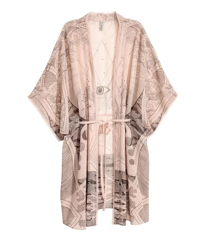 This kimono hits all the right spots with the muted palette and featured all-over pattern that ‘nods’ towards tribal. Kimono, we heart you so.