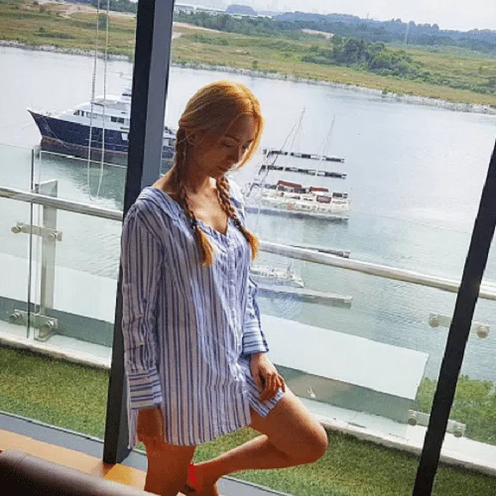 When you are on vacay mode, don’t be afraid to experiment with bold colours. Carrie looked youthful in her bright yellow tee which she teamed with a pair of high waisted pants and slides. The Mediacorp actress jazzed up her outfit with a pair of statement earrings.