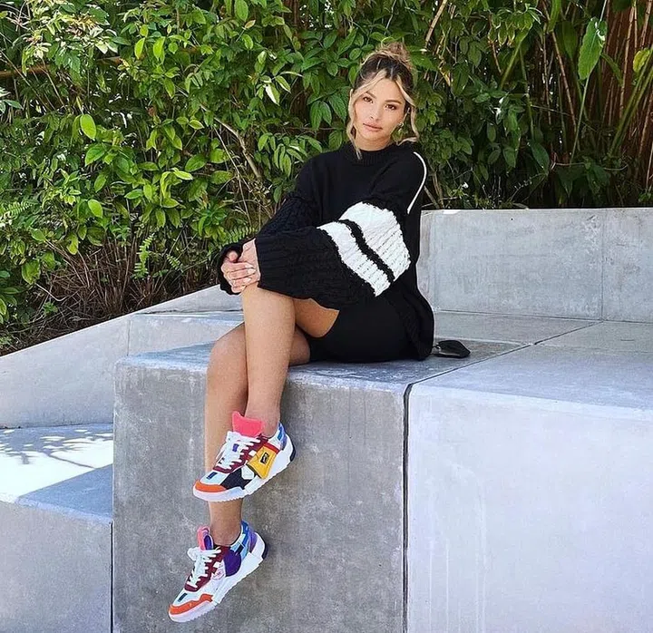 Experimenting with colours can be a scary situation, especially when your closet is filled with mostly black or dark-coloured designs. Take baby steps (literally!) by opting for something colourful in the shoes or accessories department. The clashing hues on Tabitha's kicks definitely added a mood-lifting effect to her outfit.