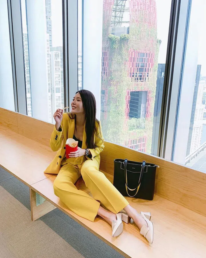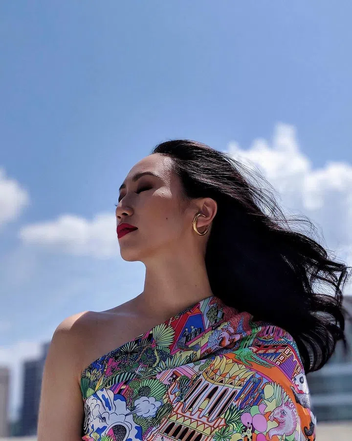 Fashion’s all about being experimental, and our August cover star Shu An is great at doing so. She wore her Hermes scarf as an off-shoulder top that accentuates her collarbone and paired it with a large gold hoop and a bold red lip that added a touch of colour and boldness to her overall look.