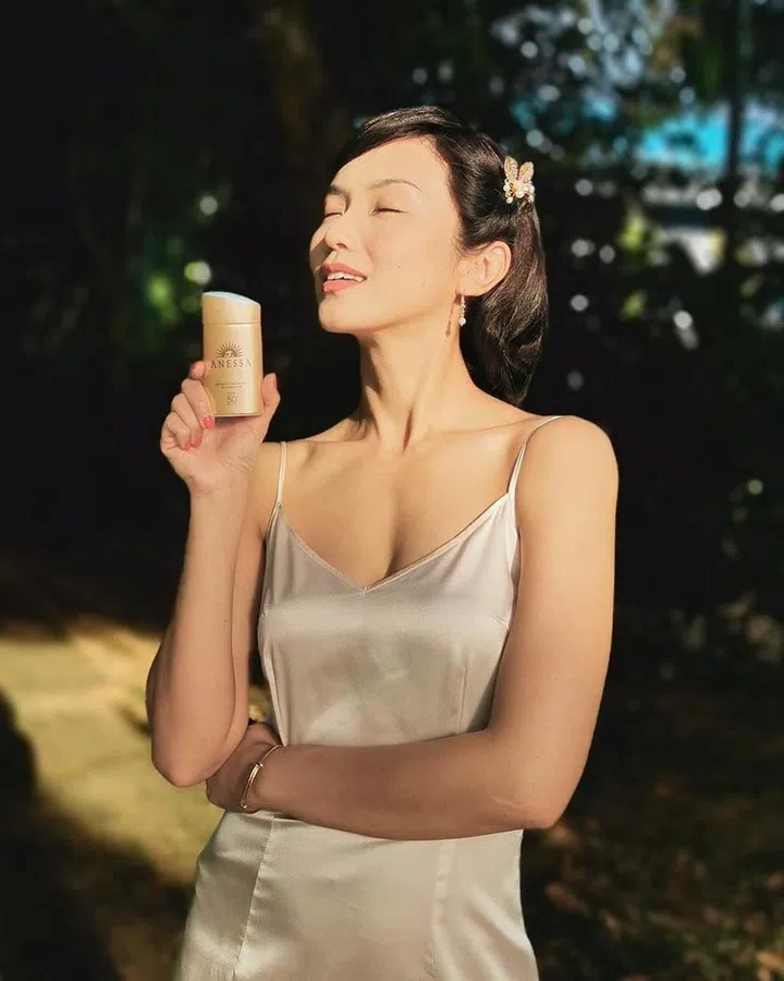 Sometimes, less is more. Joanne abides by this rule by donning a beige slip dress with a pair of dainty pearl drop earrings, an elegant bracelet and a butterfly motif head pin. It’s simple yet effortlessly chic. Genius.