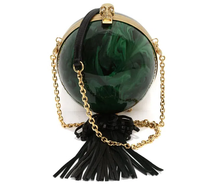 Available in smoked black plexiglass, green plexiglass and black nappa leather, the Sphere Skull Clutch bag is priced from £1,095 (S$2,305) and available from www.alexandermcqueen.com and selected retail outlets worldwide.