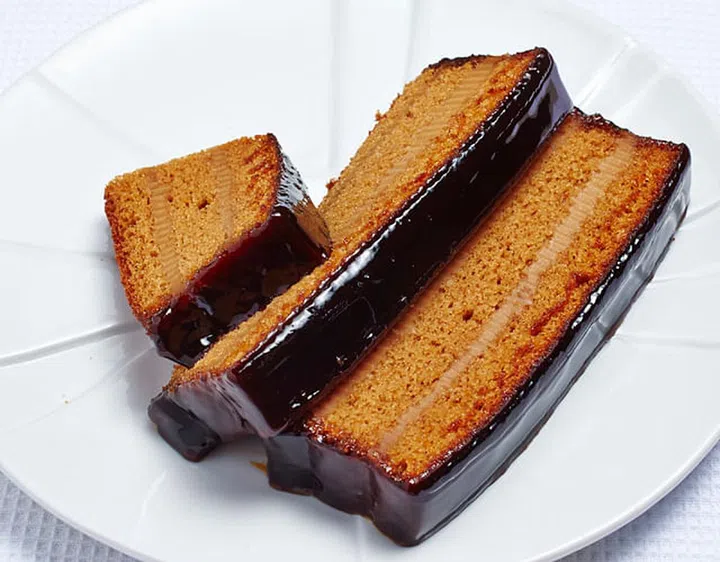 Dark and mysterious, this cake looked understated, but bowled us over with its intoxicating deep caramel notes. It’s a gula melaka trinity with moist, dense cake layers sandwiching a thick wedge of luscious gula melaka fudge, and swathed in a glistening gula melaka glaze. A svelte slice of this rich cake and black coffee is our idea of a perfect afternoon.