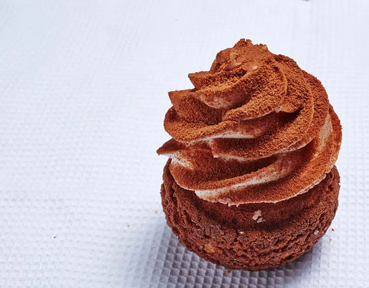 Our beloved Milo Dinosaur has met its match, reinterpreted in confectionery form. We loved the crackly Milo choux, and the intensely gau Milo cream filling. While the crown of condensed milk-spiked Chantilly was a bit milky for our taste, the Milo-and-dark chocolate meringue hidden within was a delightful crunchy surprise.