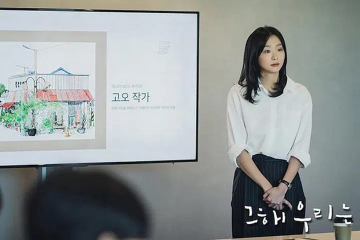 Playing the role of a PR expert, Kim Da-mi wore various fresh and elegant styles with shirts in Our Beloved Summer. And her footwear of choice for her corporate look is actually a pair of comfy sneakers.
