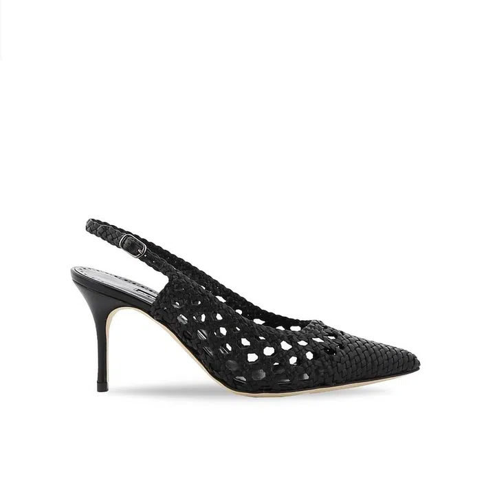 Guess which pair of slingbacks will have us swiping our cards in a heartbeat? This woven nappa leather pair from the shoe maven himself, Manolo Blahnik. The shoemaker's name may be synonymous with shimmering stilettos, but he definitely doesn't forget to go back to basics with this classic pair of black pumps. Rock this shoe on the weekend with a woven straw bag that shares the same casual sensibilities.