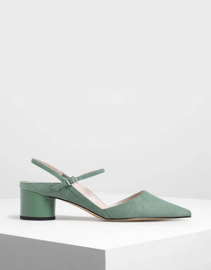 Sure, you can never go wrong with heels that err on the side of the straight and narrow, but the excitement that this geometric wood-effect heel is bringing us cannot be ignored. Go for copper with this burnt orange suede slingback heels that would perfectly gel together with a warm-toned outfit. Complete it with a prim white shirt and a caramel pair of wide-legged trousers.