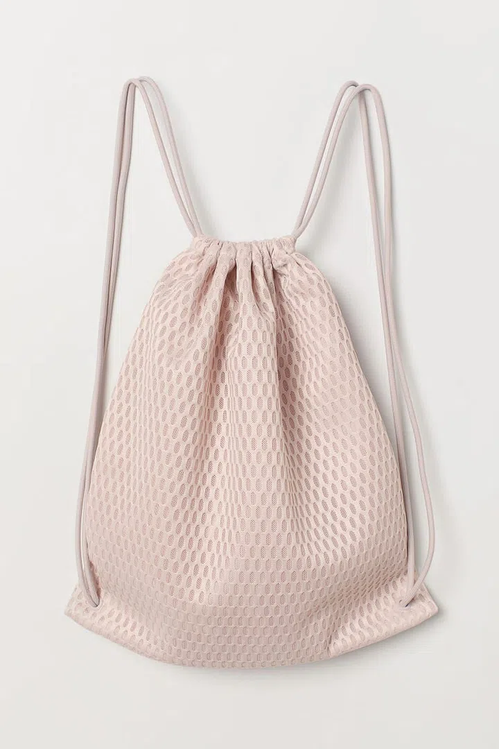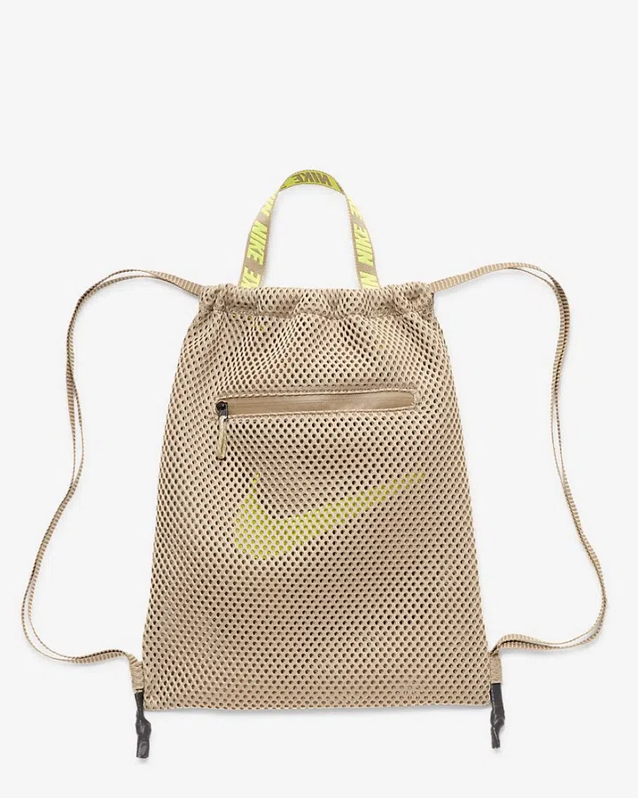 Too many black bags? Opt for this nude coloured drawstring option. The lime green logo accents add a touch of colour while open-hole mesh provides ventilation and it even has dual straps for easy carrying. Bonus: it has a pocket in the front to store your necessary essentials.