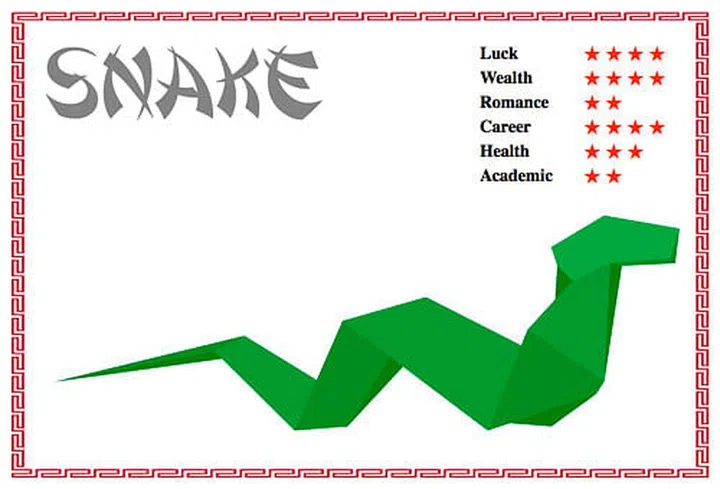The Snake will enjoy blessings from an auspicious trio comprising of the Tian De Star of Benevolence, Lu Xun Wealth Star and Fu Xing Fortune Star. This year’s outlook is optimistic as you harvest the fruits of your labour. Avoid being the object of envy or jealousy by appreciating people around you and sharing your achievements equally. There is strength in unity. Do watch your temper as the Juan She Dispute Star could get the better of you.