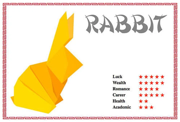 Blessed with the Zi Wei Emperor Star and Long De Prosperity Star this year, the Rabbit may look forward leaping to greater heights in luck, career, wealth and romance. Attraction from the opposite sex may rise, so exercise self-discipline. Though this is a year filled with joyous occasions, it is important to remain humble and not get carried away with your success. Take full advantage of your opportunities to establish a strong platform for future endeavours. Tendency of falls and sprains is relatively high so watch your step and be alert at all times.