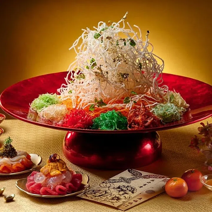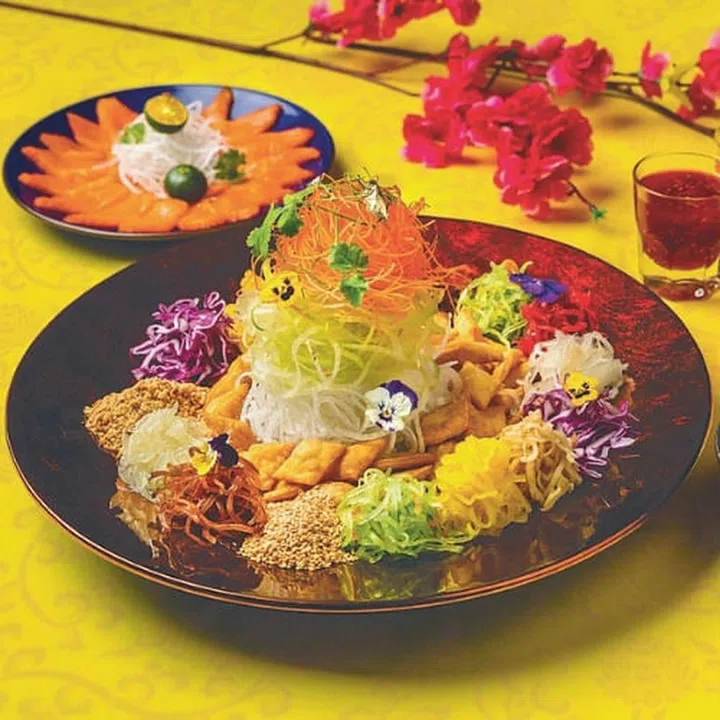 Renowned for the use of seasonal produce and authentic Cantonese dishes, Cherry Garden offers a selection of Yu Sheng ranging from the popular Prosperity Yu Sheng with salmon and crispy fish skin (from $88 for small) to the luxurious Bountiful Yu Sheng with Alaskan crab meat, salmon, and black truffle (from $138 for small).