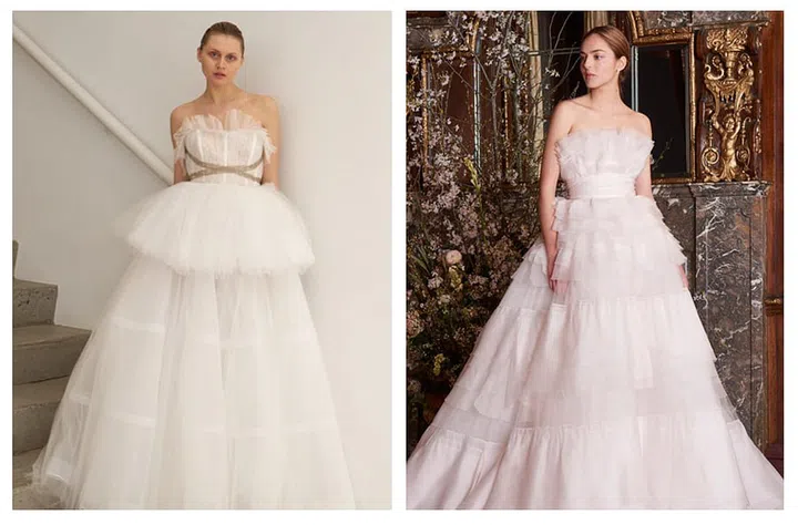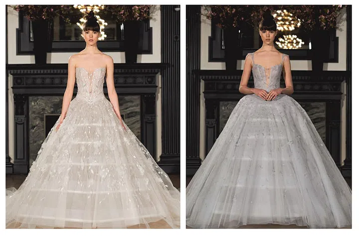 Left: Francesca Miranda Spring 2019/ Right: Monique Lhuillier Spring 2019