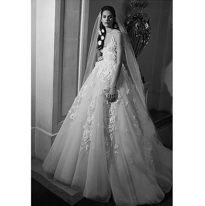 For fairytale-worthy dresses, Elie Saab is a go-to for many. For the bride who prefers her floral wedding dress (a perennial bridal favourite) a little more contemporary, this one with cascading 3D appliques, a nipped-in waist and a modern neckline gets our thumbs up.