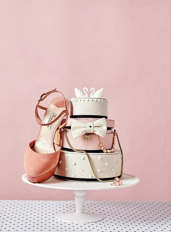 Embrace your girlie side with accessories in flirty pink hues, and a fun cake-inspired handbag that's bound to be a conversation starter.