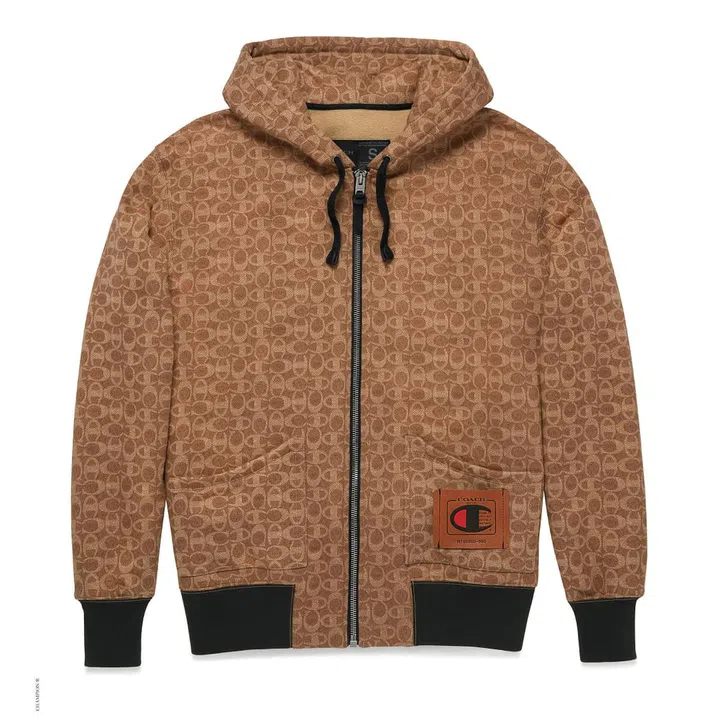 Some of the coveted pieces that you can look forward will include leather bags, leather jogger pants, sweaters, shearling jackets and more. All of which will sport the new branding that unites Coach's storypatch as well as Champion's iconic C-logo.
