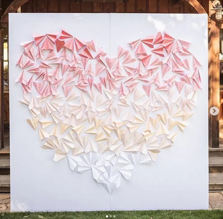 Chic and a whole lot of fun! Couples with a whimsical party in mind will adore this backdrop with hand folded blush toned paper airplanes - and you can totally recreate this yourself.
