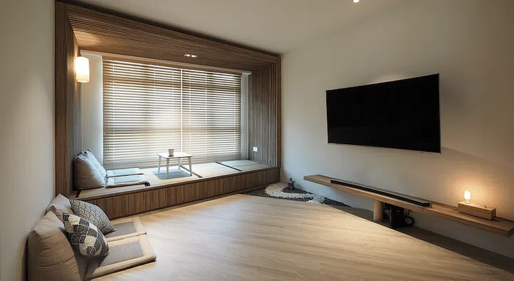 This Japanese-inspired home was designed with a timber alcove "teahouse" which come with seating areas and pull out drawers for additional storage.